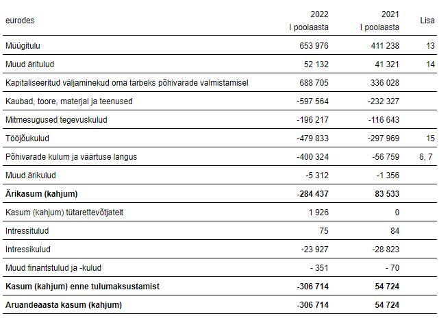 MODERA AS 2022. aasta 6 kuu auditeerimata aruanne