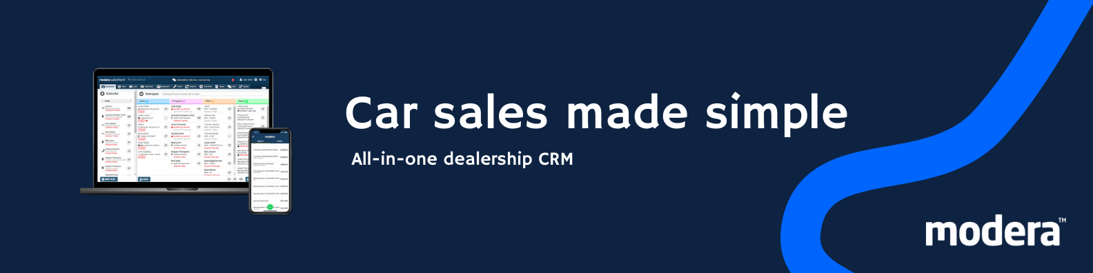 It is a software solution designed to manage your dealership’s relationships with customers and potential customers. It is important to select a CRM built specifically for the automotive industry, such as Modera Salesfront. With an automotive CRM, dealerships can automate and organize their sales, marketing, and customer service processes. And ultimately sell more cars, which is the main objective.